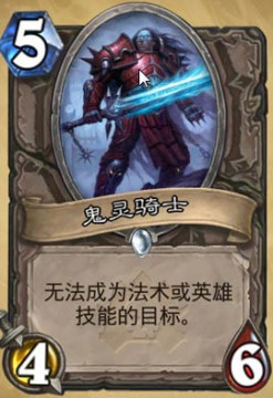 鬼灵骑士,5费4/6身材,特效无法成为法术或者英雄技能的目标。大号精灵龙,被称为微笑的姐夫。