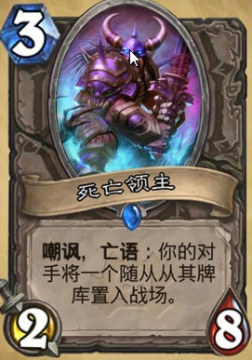 死亡领主,3费2/8,特效你的对手将一个随从从其他牌库置入占场。