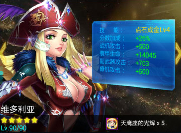新版本新加入的维多利亚则是银河之心海盗团的团长,可谓是智慧与美貌并存的靓丽女王。满级90级的属性为: