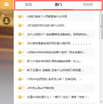 大家在问集合了众多玩家的问题,分成3个不同的页签供查看。