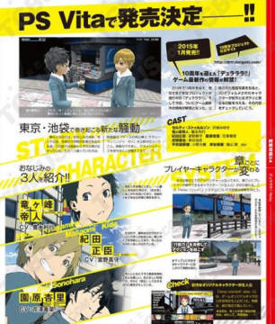 PSV《无头骑士异闻录Relay》预计2015年1月发售 来源: 飞翔小编feichenpan 2014/8/12 21:16:31 浏览量:255 根据最新一期日本电击游戏杂志情报显示,动漫改编游戏《无头骑士异闻录Relay》预计2015年1月发售,登陆PSV掌机平台。新作剧情将分章节展开,各章中玩家操作的角色将会切换,此次公开了三名主要角色以及声优CV,其分别是龙之峰帝人(CV:丰永利行)、纪田正臣(CV:宫野真守)、园原杏里(CV:花泽香菜)。