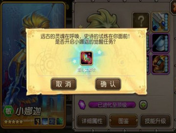 任务准备:触发任务在开始任务前,请队长哥哥和小冰冰一起检查一下,英雄是否达到90级、是否进阶为橙色,这是英雄觉醒的必要条件喔!如果已经确认,请点击装备栏的问号,开启觉醒之旅。