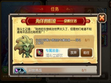 【专属装备】已开放觉醒的英雄,在90级且进阶为橙,点击装备栏左上角的问号位置可触发觉醒任务,在触发时会队长哥哥就可开启专属装备佩戴。