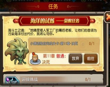 任务第三环:单挑or群殴?任务的第三环,到了真正考验英雄实力的时候了。彪悍的小娜迦MM接到的任务是单挑第11章的普通副本。小冰冰刚刚去试了下,基本上难度不大。不过也有英雄会被要求携带队伍群殴某一关卡哈。