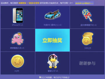 1.活动期间,每日登录电脑管家并且QQ安全登录即可获得一次抽奖机会,每日最多获得一次抽奖机会,奖品随机发放。