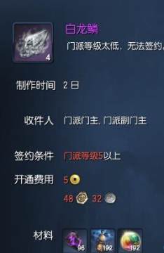 那么从现有的资料看,白龙鳞在正式服还是需要门派制作的