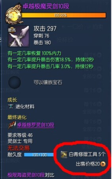 剑灵白青山脉中,玩家们最苦恼的一件事情就是武器修理了,因为白青的武器修理工具消耗量太大。