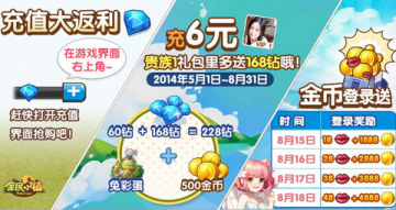 活动规则:《全民小镇》版本更新,浓情家族登录献礼。活动期间,镇长每日上线,即可通过游戏收到登录礼包一份,金币、魅力从天降,人人有份。