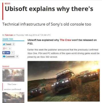 早前育碧公布的赛车网游《法外之徒The Crew》将登陆PS4,XBOX ONE和PC,最近XBOX360也确认加入该作行列,但可惜本作目前将不对应PS3。育碧解释说:“该作本来是开发在次世代平台的,因此当我们决定移植到旧平台时,我们选择了技术基础构架较接近的Xbox360,我们目前没有在制作PS3版本。”