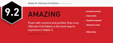 《暗黑破坏神3》的在XboxOne以及PS4上的主机版《暗黑破坏神3终极邪恶版》与粉丝们见面了,而国外知名媒体IGN也对它进行了测评,获得了9.2的傲人成绩,可以说是一部神作了。