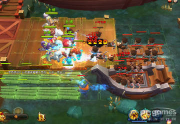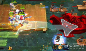 选个耐抗而且是近战放在竹筏上一格,如图中的凌统,这个位置是在BOSS从下面开启偷袭兵的时候可以抵挡骑兵冲杀,也可以范围输出,顺带殴打BOSS,这是最关键的,不放过BOSS靠近时任何殴打他的机会。