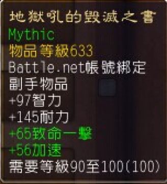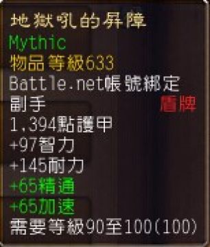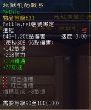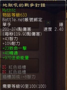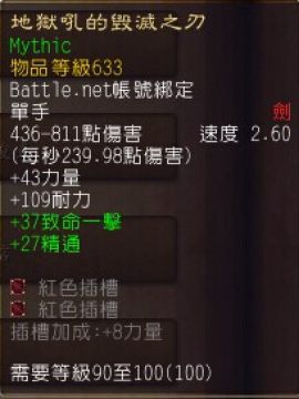 到了100级,不管是哪种难度的传家宝武器都会统一装备等级,统一为633,比WOD 5H的装备等级略高,5H的装备等级为630,属性完全相同。
