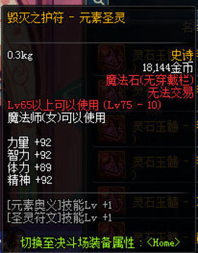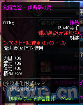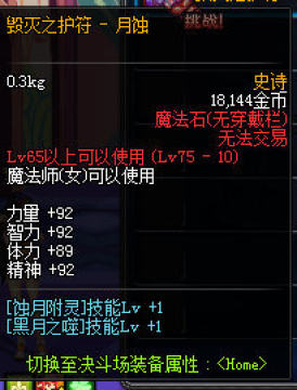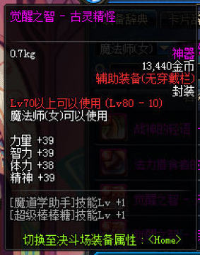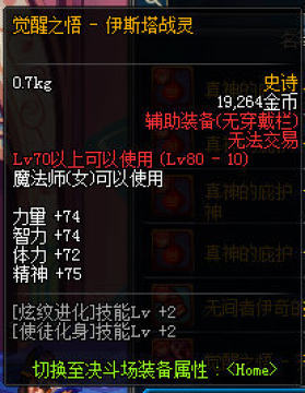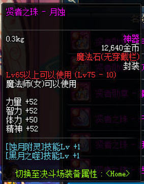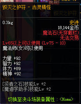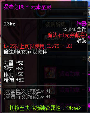 DNF女法二觉粉SS左右槽装备属性介绍: