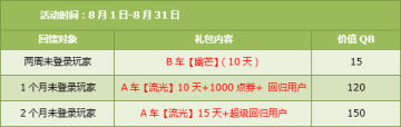 拥有【超级回归用户】道具的玩家,每天完成5局竞速赛,即可获得100点券+200消费券。