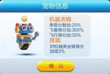 以上是两只宠物的属性技能情况,从数据我们可以看出,机器吉姆的属性加成似乎要比霹雳狗强很多,不过,极其吉姆的技能实在是有些鸡肋。毕竟目前酷跑最强的坐骑中并没有机械类的,而最强的机械类坐骑也就是紫焰哈雷和暗影战车啦!