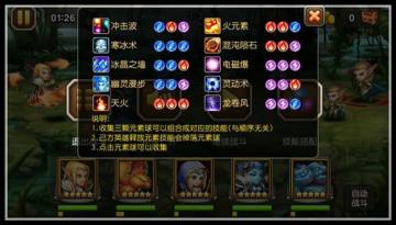 队长哥哥只要点击元素球,它就会落在召唤师的头上,积攒三个,就可以召唤元素技能咯!但是,队长哥哥在点击元素球时,要考虑元素球的属性,因为不同属性的组合会召唤不同的技能喔!