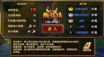 其实就是每天根据自身的号角数量来尽量多的来冲自己在角斗场的排名和赢更多的场数,每赢3场都会有荣誉奖励,累积胜场越多奖励也越丰厚,其次就是根据自身使自己保持在某一个排名阶段,也会获得不同的荣誉奖励。依次方法保持每天的荣誉获得数量即可。