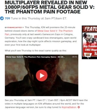 根据国外著名游戏媒体IGN的报道,将在本周四放出德国科隆展Gamescom2014《合金装备5幻痛》多人模式DEMO演示,由于该多人模式DEMO在科隆展上以闭门演示分享给指定观众,因此很多粉丝无法真正一窥《合金装备5幻痛》多人模式特性。