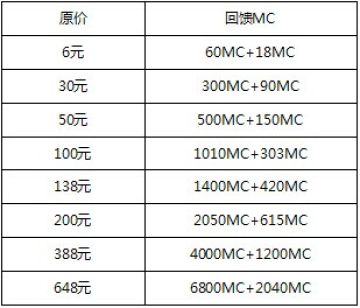 庆祝新版本更新, MC充值额外赠送30%MC!