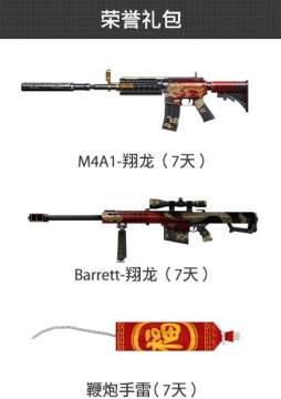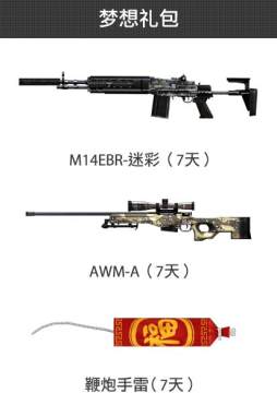 4.梦想礼包奖励有迷彩7天、awm-a7天等武器
