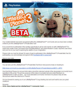索尼旗下Sumo Digital工作室目前寄出了《小小大星球3》Beta测试的激活码,该码数量非常有限,必须是《小小大星球》社区成员或特别邀请玩家才能获得。该Beta测试容量为9GB,目前官方还未透露测试结束时间。