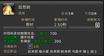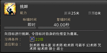 坦克的标志:嘲讽技能。要注意的是使用此技能后只是将你的仇恨值提升到与目标当前最大仇恨值相等,而非强制怪物攻击你一段时间,如果在使用挑衅后不释放其他技能的话,目标还是会掉头去攻击你的队友哦。挑衅后一