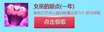 活动期间,只要当前角色累计打开的点心盒数达到5个,即可免费领取“女巫的甜点”头像(1年有效)。只要当前角色累计打开的点心盒数达到8个,即可将此头像免费升级为永久版。 头像的发放会与完成任务的大区角色绑定,不能跨区领取。