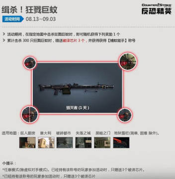 CS反恐精英OL缉杀狂戮巨蚊活动奖励介绍: