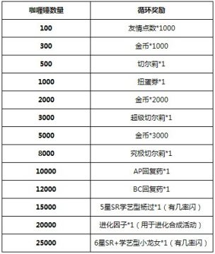 2.8月18日15:00更新结束后-9月1日15:00,所有妖精在觉醒后都有概率再次觉醒为超觉醒SR+妖精神乐御子,击败将掉落各种道具!包括:扭蛋券、AP回复药、BC回复药、1/2AP回复药、1/2BC回复药、金币、友情点数、咖喱糕(所有道具低概率出现2倍、5倍掉落翻倍),其中咖喱糕道具每集齐10个将必定获得SR+学艺型神乐御子*1(有概率闪),可循环获得。