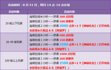 QQ飞车8月30日8月31日回馈活动介绍 极品A车阿波罗免费得