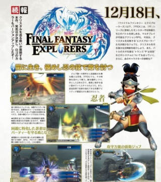 《最终幻想 探索者》忍者和时魔导士新职业登场 来源: 飞翔小编 2014/8/28 23:13:46 浏览量:473 根据本周日本游戏杂志Fami通新情报,Sqare Enix公开了动作RPG游戏《最终幻想 探索者》最新情报,其新职业“忍者”“时魔导士”也登场,新水晶守护兽“拉姆乌”“芬里尔”详情公开。《最终幻想 探索者》预定于2014年12月18日发售,登陆3DS掌机平台。