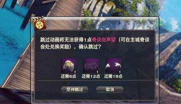 1.遇到任何剧情千万不能跳过!看完剧情动画会给1点奇谈声望,声望可以在主城兑换发型、眼镜、翅膀等。
