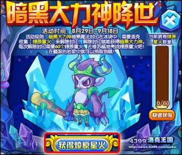 《洛克王国》2014年8月29日版本更新后追加了暗黑大力神宠物,玩家需要积满60个燎原星火才可得到暗黑大力神奖励,这里给大家分享下《洛克王国》燎原星火怎么得,燎原星火作用介绍。