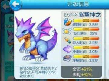 天天酷跑紫翼神龙是炫飞模式中即将带来的新的坐骑,其威猛霸气的造型让众多玩家深深折服,最强悍的莫过于他的特技了,鸟叔和白虎的完美结合,虽然是目前来说最贵的坐骑,但是你买了它就相当于同时买了鸟叔和白虎。