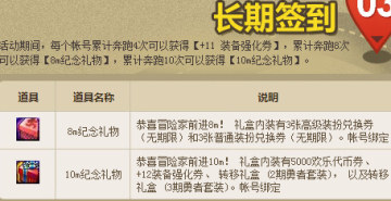 DNF签到奔跑活动地址 签到奔跑活动奖励一览 来源: 飞翔小编 2014/9/2 9:10:13 浏览量:391 在DNF游戏中,2014年9月2日至11月11日,天天签到,周周签到,海量福利大放送!欢乐代币券、装扮兑换券、+12装备强化券、勇者套装等你来!签到奔跑活动地址