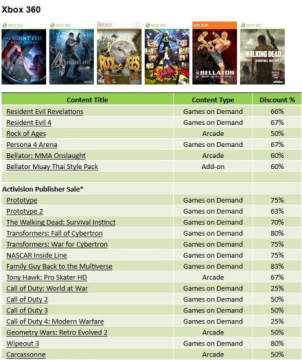 微软本周XBOX LIVE游戏折扣促销活动开启 来源: 飞翔小编feichenpan 2014/9/3 20:45:46 浏览量:292 微软官方现今开启了本周XBOX LIVE折扣促销活动,其中XBOX360数字下载版游戏《生化危机启示录》有66%折扣,《生化危机4》有67%折扣等,动视射击游戏使命召唤系列均有25%至50%的折扣。而XBOX ONE数字下载版游戏《光之子》和《疯狂摩托》分别享有33%折扣和40%折扣,各位XBOX LIVE金会员玩家不要错过了。