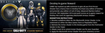 《使命召唤11》预购可获《命运》20级工匠染色道具 来源: 飞翔小编 2014/9/3 21:32:50 浏览量:314 根据北美游戏零售商Gamestop的最新情报,提前预定动视射击大作《使命召唤11高级战争》的玩家都将获得《命运》中20级的工匠染色道具,其具有传说级别的品质,能快速帮助玩家给任何装备进行颜色涂装。此次联动活动将持续到2014年9月21日,仅在北美地区Gamestop店铺开展,国内玩家无福消受了。