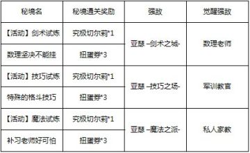 2.对阵完亚瑟们的试炼后,都有概率觉醒为对应的SR+强敌数理老师、军训教官、私人家教,击败有几率掉落本体卡牌!
