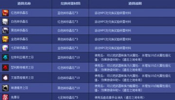 从上面的兑换比例大家也可以看到,七彩转移晶石是最稀缺的,因此可以兑换的奖品也是最好的~(虽然也没有多好)