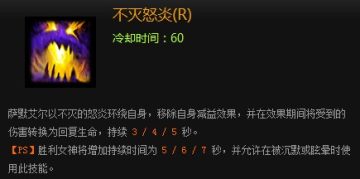 说明:开启不灭怒炎的暴怒将成为让敌人头痛的角色.短暂的攻击免疫被攻击时回复所受到的所有伤害转为声明(不免疫状态效果比如眩晕等等).