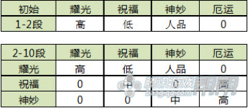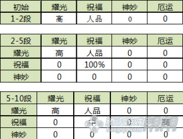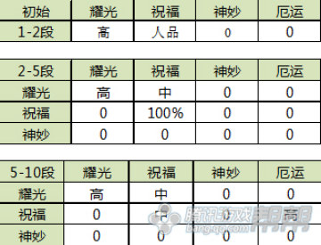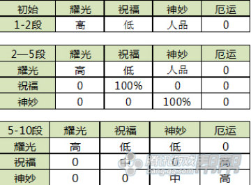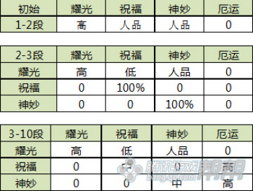 1、1段升2段出现噩运的概率0,出现耀光的几率比较高,人品好可以出现祝福和神妙