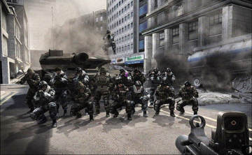 这种战术大家在电影中已经见过很多次了,我就不用多讲了。但游戏毕竟是游戏,在对方火力凶猛的情况下拿枪回击的玩家不在少数,其关键只在于子弹打他身上不会疼(如果会疼他可能不会这样勇敢)。因为这样的原因,游戏中的火力压制与真实战斗就有了很大的区别,也可以说压制这一战术在游戏中的作用是被大大的弱化了,是这样吗?我看不见得。因为游戏与现实相同地方在于能KO对方,这点谁也改变不了的!(呵呵)真实的火力压制是集中已方的优势火力对敌方藏身处进行打击,使敌人不能观察我军行动且进行还击,压制火力首选机枪(火力持续性强)、各型突击步枪(火力猛杀伤力大)。但是在游戏中,中远距离内KO对方的可能性不是很高(个别突击步枪高手例外),在游戏设计时就考虑到了这一点,如果像真枪一样,那这游戏的专业性太强,就会降低可玩性(娱乐性)。
