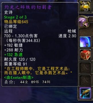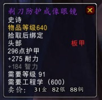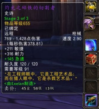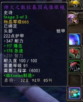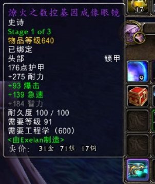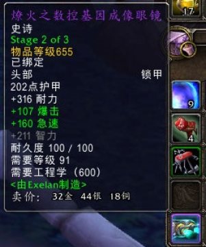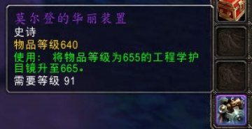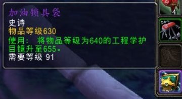 刚制作出来的眼镜是640等级,使用加油锁具袋和莫尔登的华丽装置,可以升级两次至665等级