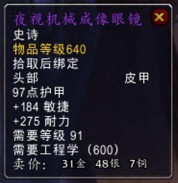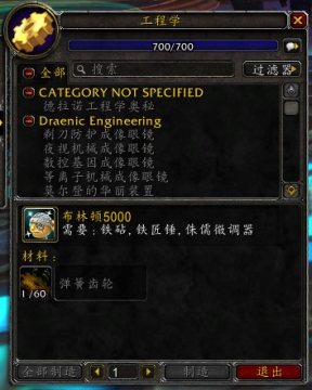 接下来是工程眼镜,原料:60个弹簧齿轮。主属性固定,次级属性随机。