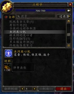 接下来工程传送器虫洞离心机,原料:30个弹簧齿轮。可以选择传送到德拉诺的各个大陆。