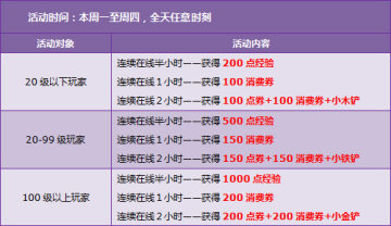 拥有【回归用户】或【超级回归用户】道具的玩家,每天登录游戏后,均可获得一张2小时双倍经验卡。