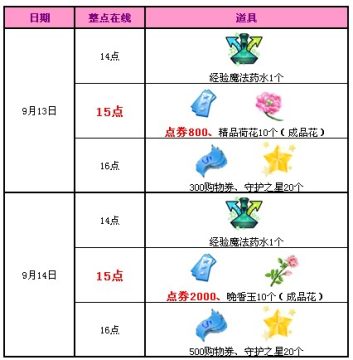 9月13日15点整点在线,即可获得800点券。