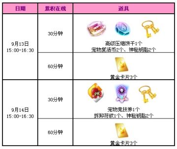活动期间累积在线满足活动要求,即可轻松抱走宠物道具、拆卸符文、神秘钥匙等好礼。