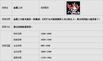 《魔力宝贝》手游血腥之刃怎么得血腥之刃厉不厉害 来源: 飞翔小编 2014/9/9 15:31:10 浏览量:1288 魔力宝贝手游中血腥之刃是大家公认的65级最强宠物之一,那么血腥之刃怎么获得,到底怎么个厉害法,让我们一起来看看。宠物说明:血腥之刃原本就是一把魔剑,它们只认可能够配得上自己的主人,最讨厌的敌人就是盾了。获得方式:只能通过宠物扭蛋获得。小编这里建议给血腥之刃带上突袭技能,秒杀能力会非常恐怖。