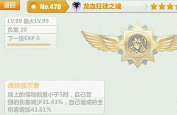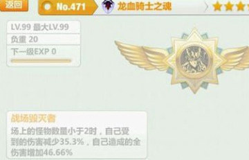 而进化成龙血骑士之魂就更加变态了,我们的触发条件从5个怪物变成了只要2个怪物才能触发,龙血骑士之魂我觉得更倾向于单挑了,在单挑BOSS的时候输出以及减伤比前面两个更有效果了,受到伤害减少35.3%,自己输出伤害增加46.66%。